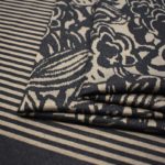 Джерси с купоном черная с бежевым полоска цветы (7021)