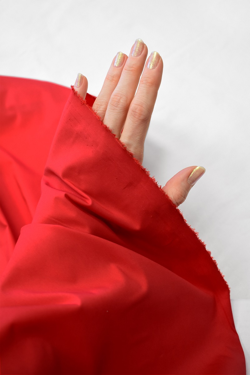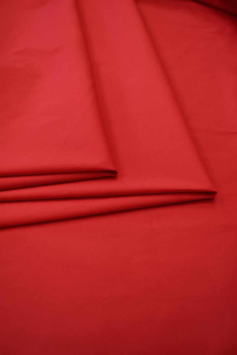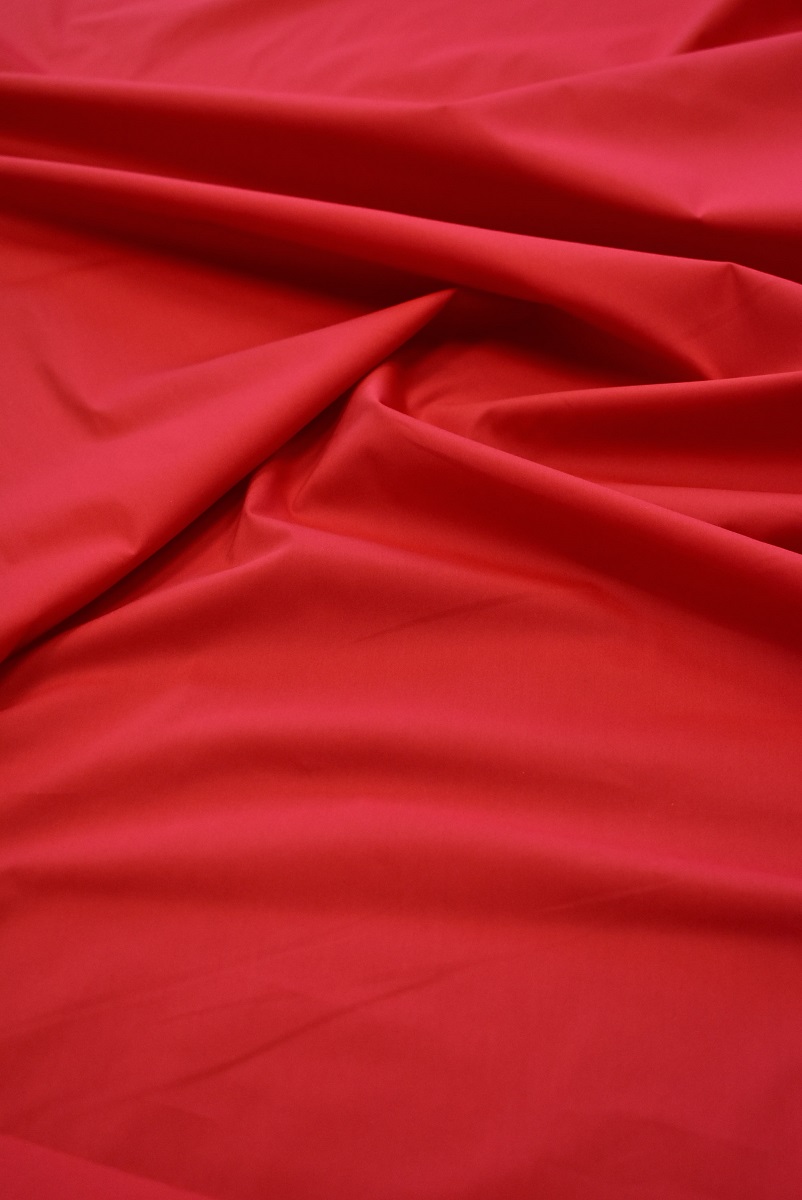 Хлопок с шелком стрейч, оттенок красный. Ткань с добавлением шелка, тонкая, легкая, невероятно мягкая и нежная. Подходит для классических рубашек, а также летних сарафанов в романтическом стиле. Текстура очень приятная на ощупь, гладкая, достаточно эластичная, что обеспечивает безупречную посадку изделий по фигуре и комфорт в носке. Хорошо комбинируется с другими материалами, отлично смотрится как с классической одеждой, так и с простыми джинсами.