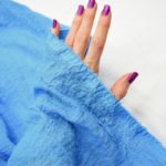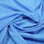 Хлопковая марлевка голубого оттенка. Тонкая, легкая, слегка жатая ткань для комфортных летних кофточек, блузок, туник, платьев. Полотно мягкое, нежное, воздушное, хорошо драпируется. Подойдет не только для одежды, но и аксессуаров, например, платков и снудов, которые отлично будут смотреться как с курткой, так и пальто.