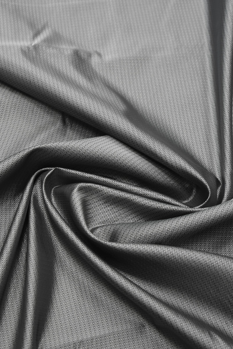 Жаккардовый подклад серого цвета в мелкий узор. Ткань натуральная, 100% вискоза, достаточно плотная, очень комфортная и приятная к телу. Прекрасно подойдет для пальто, куртки, жакета, шубы, костюма, плаща. Вещи с подкладом лучше держат форму, дольше сохраняют вид, уютные, практичные и долговечные.