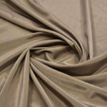 Подкладочная ткань с эластаном, оттенок темный беж. Легкая, гладкая, с красивым блеском. Отлично скользит, почти не мнется, очень приятная к телу. Незаменимая часть одежды, подойдет для костюма, жакета, пальто, юбки, куртки. Вещи с подкладкой лучше держат форму и сохраняют силуэт. Подклад будет очень удобный и практичный, его красивый отлив украсит изделие, а гладкая фактура обеспечит идеальное скольжение и износоустойчивость.