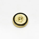 Великолепные пуговицы из коллекции Roberto Cavalli на черной пластиковой подложке в прозрачном лаке залиты золотая змейка и логотип модного дома. За счет прозрачной структуры пуговицы золотой декор выглядит очень выразительно, объемно и по-королевски дорого.
