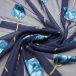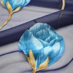 Шифон Деворе с вышивкой голубые тюльпаны на синем фоне (7342)