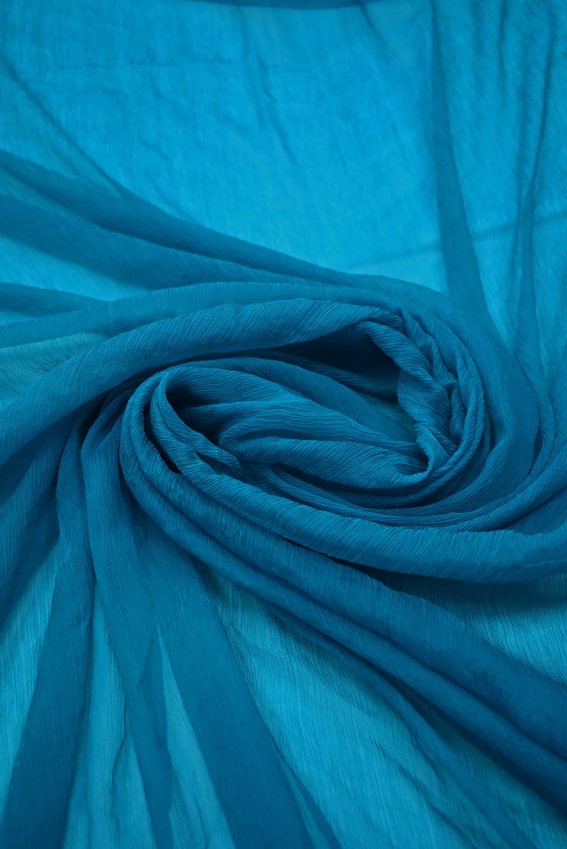 Шелковый шифон креш, оттенок морской волны. Тонкий, легкий, мягкий и нежный. Крешированная поверхность придает ткани воздушность, интересную фактуру и легкую эластичность. Ткань будет роскошно смотреться в блузке, вечернем платье, юбке, тунике, сарафане. Подойдет для создания не только одежды, но и потрясающих летних шарфиков. Это удивительно женственный материал поможет создать изысканный наряд, который тонко подчеркнет вашу фигуру, а мягкие складки скроют некоторые недостатки.